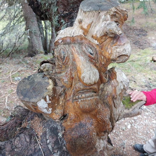 Es gibt mehrere solche Schnitzereien, direkt aus Baumstämmen.