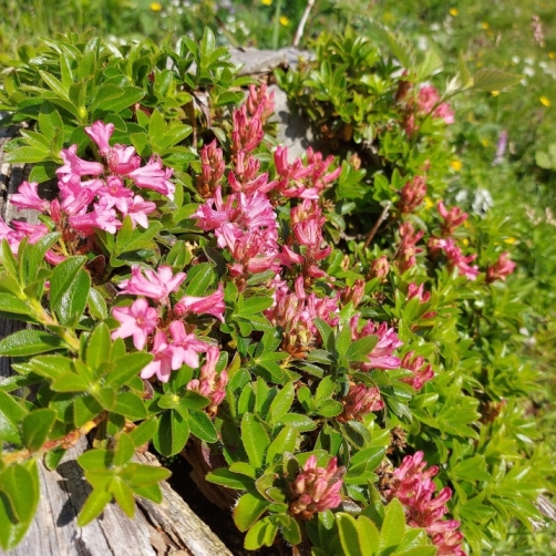 Sogar einen kleinen Almrausch-Stock haben wir gesehen. Sehr gemütlich rauf zur